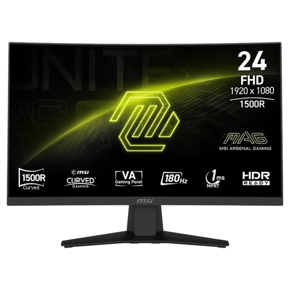 MSI 244C 24″ VA Curvature 1500R Curve Resolution 1920 x 1080 (FHD) 180Hz 1ms 2x HDMI™ 1x DisplayPort AMD FreeSync™