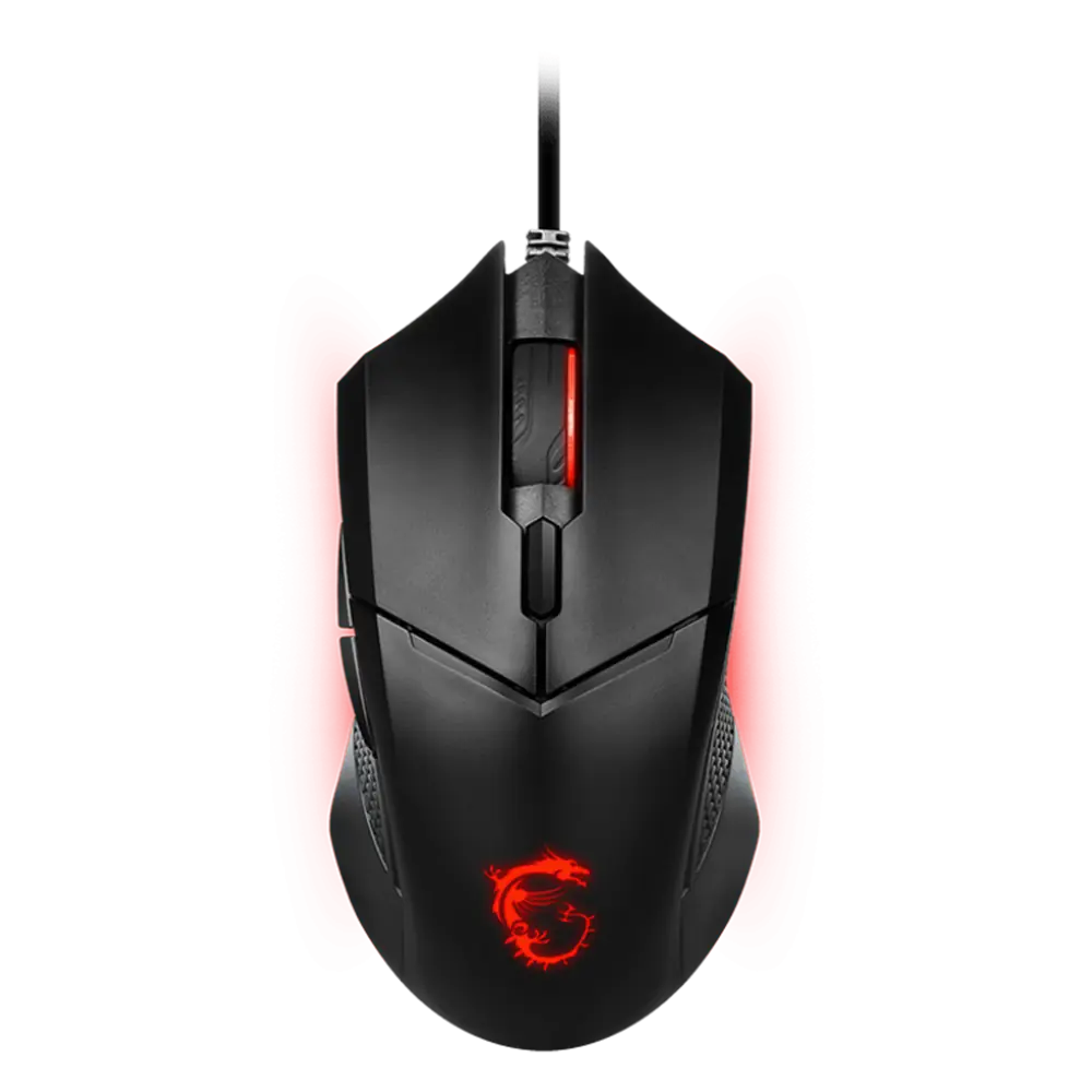 MSI Clutch GM08 Gaming Mouse, 4200 DPI, Optical Sensor, 3 Adjustable Weights, Red LED Lighting, Symmetrical Design, Black