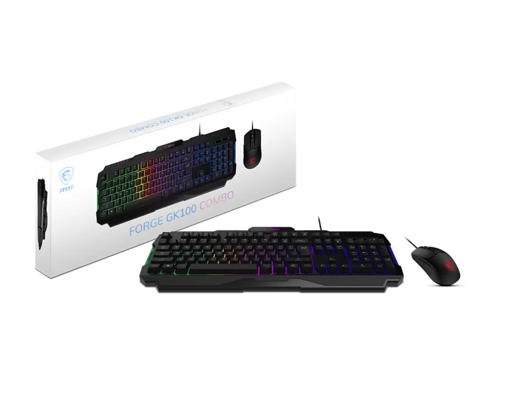 MSI FORGE GK100 COMBO AR-ENG – Gaming RGB Keyboard & Mouse Set, 19-Key Anti-Ghosting, 6400 DPI Optical Sensor