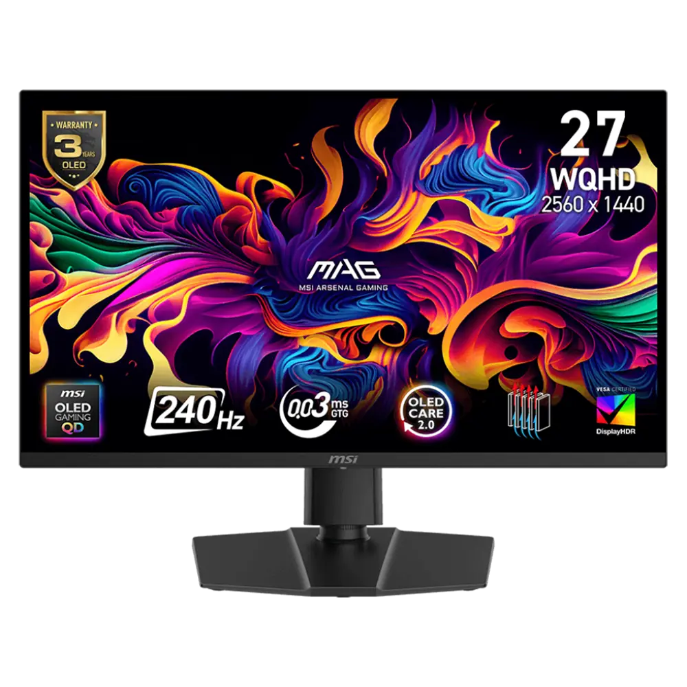 MSI MAG 273QP QD-OLED X24 27″ Rapid IPS FLAT Resolution 2560 x 1440 (WQHD) QD-OLED 240Hz 0.3ms HDR True Black 400 2x HDMI 2.1 (WQHD@240Hz) 1x DisplayPort 1.4a (HBR3)