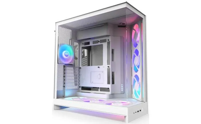 NZXT H9 Flow RGB+ (2025) Panoramic Perforated Dual-Chamber Mid-Tower Tempered Glass New Design Gaming Case w/ 2X F420 RGB Core Single-Frame Fans + 1XF120 RGB Core & Back-Connect Ready – White